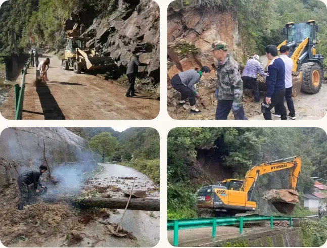 针对塌方、树木倒伏造成的道路受阻问题,第一时间组织党员干部、志愿者及群众组成抢险队伍,携带铁锹、锄头、铲车等工具赶赴滑坡路段。大家分工协作,清理路面落石、泥土等障碍物,争分夺秒打通交通“生命线”,确保救援车辆、物资运输及群众出行通畅。对因电线杆倒伏造成停电问题,镇电管所与县级电力抢修队迅速抢修,及时恢复该村供电,保障了群众基本生活用电需求。