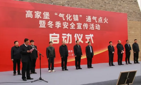 神木市发展改革和科技局局长白杰华、神木市应急管理局局长宋军、神木市住房和城乡建设局党组成员刘军、神木市文化旅游产业投资集团有限公司董事长田文波、高家堡镇镇长李大伟、石峁遗址管理处副主任刘晓虎、神木市美能天然气有限责任公司总经理崔鹏、神木城投燃气开发有限公司董事长焦鑫、神木市洁硕能源有限公司总经理葛建江以及石峁遗址管理处、高家堡镇政府、文旅集团高家堡分公司全体领导干部、驻镇企事业单位负责人、“气化镇”项目建设人员和镇区天然气用户代表等参加了启动仪式。