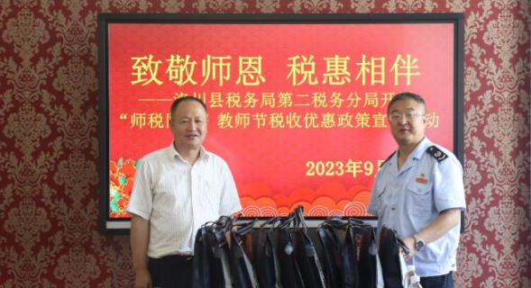 一朝沐杏雨,一生念师恩。在第39个教师节即将到来之际,洛川县税务局党员先锋服务队,9月5日,开展了“师税同行”税收优惠政策宣讲活动,为延安市第一中学和洛川县东关小学辛勤耕耘的教师们送去最新的个税税收优惠政策和节日的祝福。