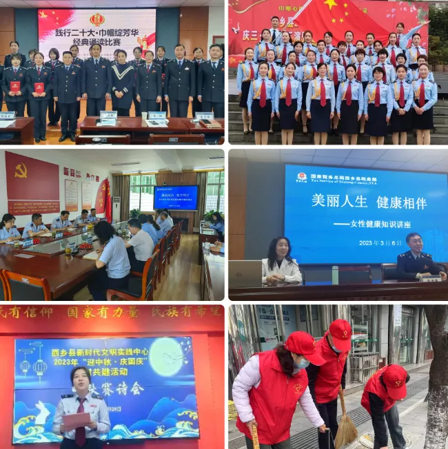 西乡县税务局把党建工作作为驱动新时代妇女工作的红色引擎,持续加强政治机关建设,带领女职工加强理论学习、锻炼实干本领。鼓励女税干积极参与“网上办、云上办、邮寄办、预约办”等机制创新,构建便捷、高效的纳税服务新体系,开展“三八”妇女维权周、“12.4”法律宣传日等系列活动,举办“经典诵读”、“家庭爱廉说”、“巾帼岗位评比”,投身文明城市创建,绽放最美芳华。