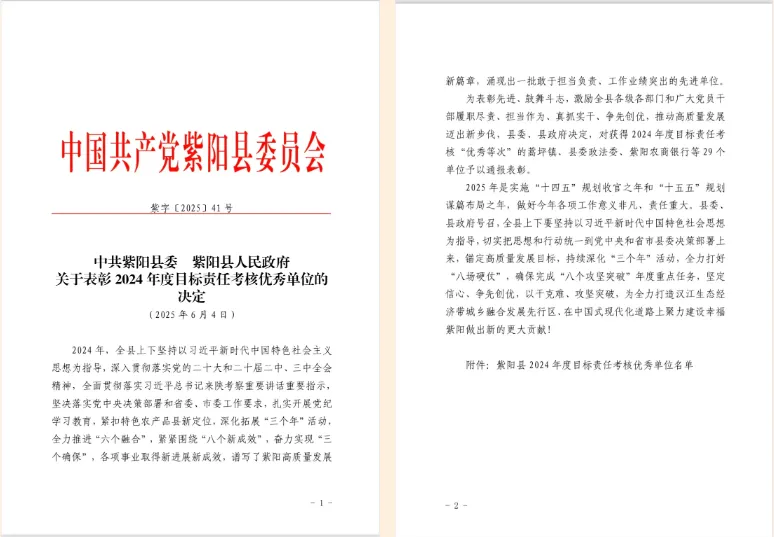 6月5日,在全县2024年度目标责任考核总结表彰大会暨重点工作推进会上,紫阳县红椿镇荣获紫阳县2024年度目标责任考核优秀单位,至此实现年度目标责任考核“三连优”。