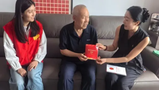活动中,慰问组带着精心准备的贺卡和慰问品,深入老党员家中开展暖心交流。每到一户,党员干部都与老党员促膝谈心,细致询问他们的健康状况和生活需求,认真记录他们对社区治理的宝贵建议。在有着52年党龄的贺成来老人家中,当接过印有入党誓词和暖心寄语的贺卡时,老人激动地表示:这张贺卡让我重温入党时的铮铮誓言,虽然年事已高,但共产党员的本色永不褪色!