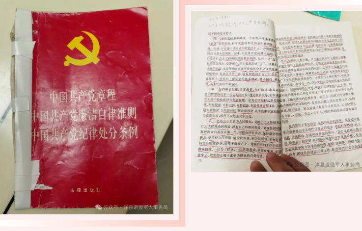 如今,年过九旬的李海春仍保持着常年读书看报的习惯,他还订阅了《当代陕西》,尤其是那本陪伴他多年的《中国共产党章程、中国共产党廉洁自律准则、中国共产党纪律处分条例》(合订本),已被他翻阅得破损卷边而多次用针线缝补、胶布粘贴。书中密密麻麻的批注,记录着他几十年如一日的学习心得。他常说:“党章不是用来背的,是用来做的!”