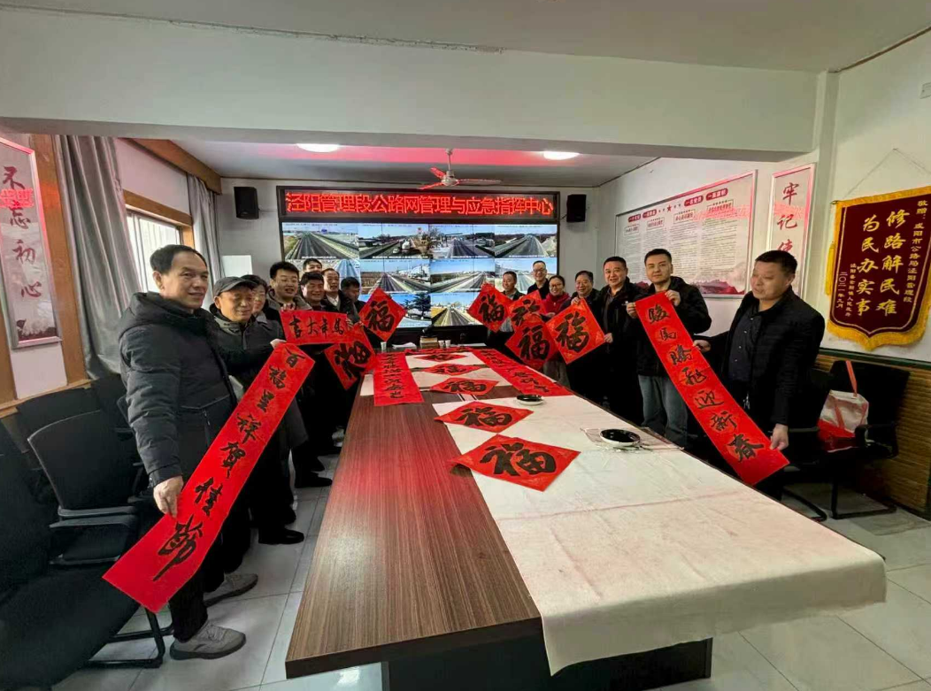 一纸春联寄温情,一句问候暖人心。此次活动既弘扬了中华优秀传统文化,又把市局工会的关心关爱精准送到职工心坎上,进一步凝聚了人心、鼓舞了士气。泾阳管理段全体职工将把这份温暖与鼓舞转化为干事创业的强大动力,传承发扬“甘为路石、敢承大重” 的公路人精神,全力以赴做好春运保畅、公路养护、安全值守、宣传报道等各项工作,以实干担当守护春节期间管养路段安全畅通。(吴泽金)