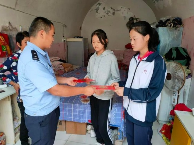宜川县公安局“一村一警”办公室民警代表宜川县公安局党委为5名学生分别送上1000元助学金,并与他们亲切交流,详细了解贫困生生活状况,鼓励学生家长增强克服暂时困难的信心,支持学生完成学业,勉励学生自尊自信、自强自立、厚德博学、磨砺品格、成就人生,做开拓创新的领跑人、实事求是的践行者,继续发扬自强不息、艰苦朴素、勤奋好学的精神,圆满完成自己的大学学业,将来回报父母、回报家乡,为社会发展作贡献。