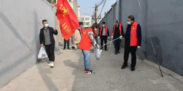 党员志愿者身穿红马甲,手拎垃圾袋,与社区干部穿梭在街头巷尾,大家不怕脏、不怕累,仔细寻找每个角落、每条缝隙里的烟头、垃圾,没有垃圾钳就徒手捡拾。