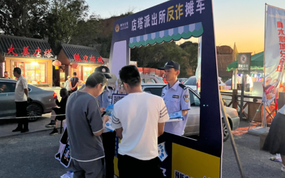 近日,神木市公安局店塔派出所创新宣传形式,定制反诈专属宣传包,深入辖区集市、广场、景区,开展反诈宣传活动,将反诈服务用别样方式送到了群众的身边。