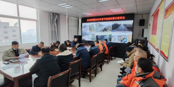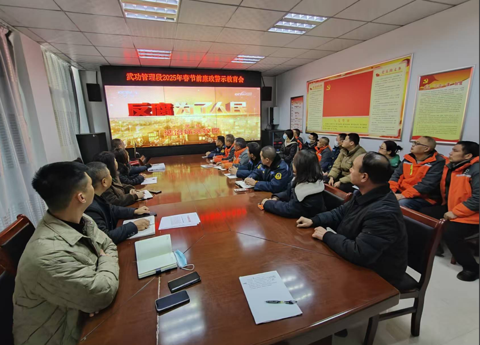 为进一步加强党员干部职工的廉洁自律意识,营造廉洁祥和的节日氛围,1月17日,咸阳市公路局武功管理段利用理论中心组学习(扩大)会议,组织全段党员干部职工开展2025年春节前廉政警示教育。