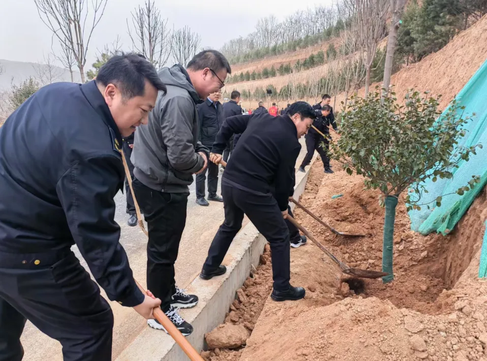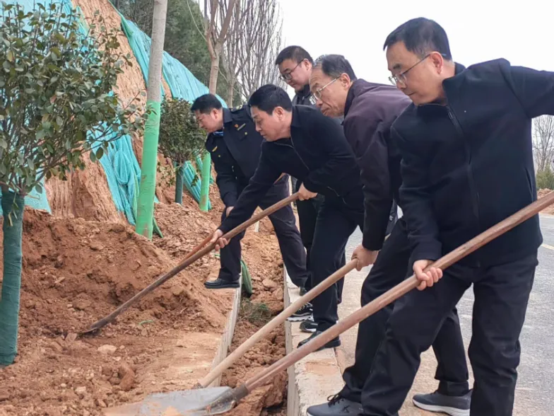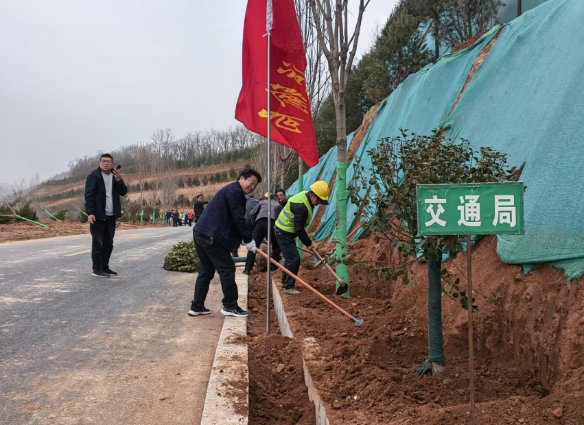 植树现场,党旗飘扬,人头攒动。局长杨鹰率先垂范,与干部职工一同挥锹铲土、扶苗培土,大家分工协作、干劲十足,现场一派热火朝天的劳动景象。经过数小时的奋战,一株株新栽的树木、迎风挺立在公路两边,在春日暖阳下焕发勃勃生机。