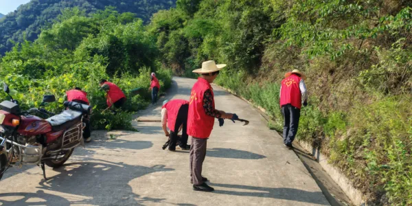 与此同时,村组干部和道路管护员分工明确,干劲十足。他们手持扫帚、铁锹等工具,对道路两旁的杂草、白色垃圾进行细致清理。对于藏在生命防护栏缝隙中的垃圾,他们更是蹲下身子,用夹子一点一点地夹出,不放过任何一个卫生死角。大家齐心协力,不放过任何一处细节,以实际行动诠释着对家乡环境的热爱与责任。