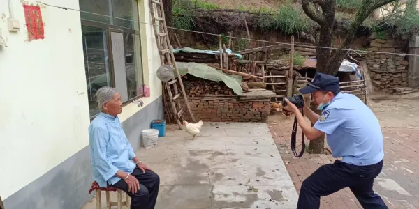 8月20日,辖区大河塔镇刘家沟村青草沟组一位八旬老人王某某打电话求助称,自己行动腿脚不便,儿子身体也不好,由于上次全民核算,她的身份证丢失,现村上高龄审核无法通过,需要户籍民警上门办理。所领导高度重视,第一时间安排户籍民警上门为老人办理身份证。