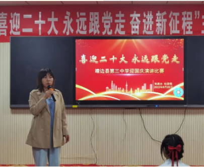为迎接党的二十大胜利召开,汇聚青年力量,展示青春风采,9月28日晚,由靖边县第三中学团委组织举办的“喜迎二十大 永远跟党走”演讲比赛决赛在该校行知楼阶梯教室如期举行。