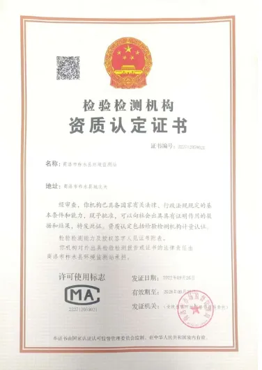 9月26日,柞水县环境监测站通过检验检测机构资质认定评审,顺利取得环境监测资质认定证书,具备了水和废水、噪声项目的监测资质。
