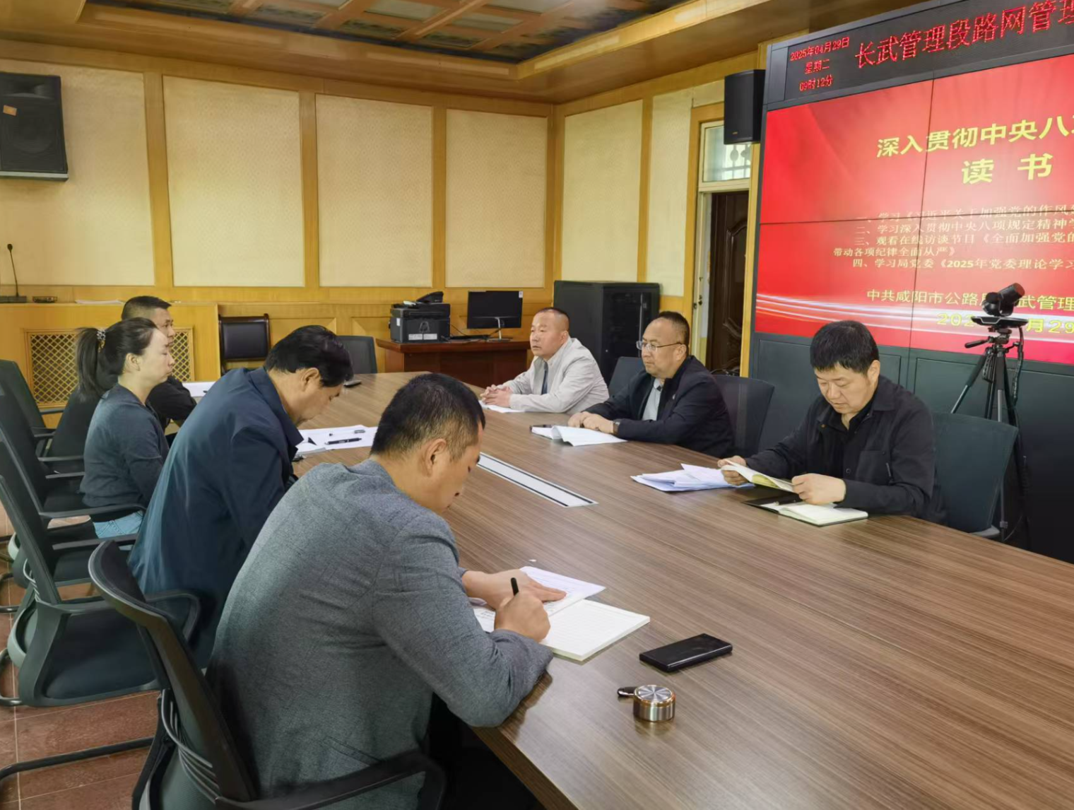 为扎实推进深入贯彻中央八项规定精神学习教育走深走实,按照咸阳市公路局党委有关要求,4月29日,长武管理段党支部组织党员干部举办深入贯彻中央八项规定精神学习教育读书班。