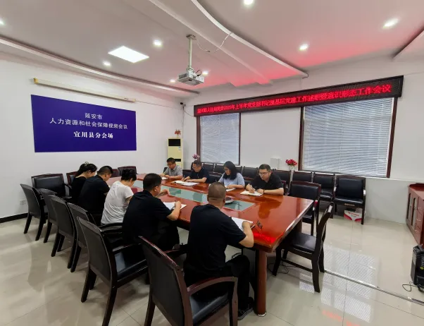 7 月 8 日,宜川县人社局党委组织召开了 2025 年上半年党支部书记抓基层党建述职暨意识形态工作会议。局领导班子成员、局属各单位党支部书记参会。