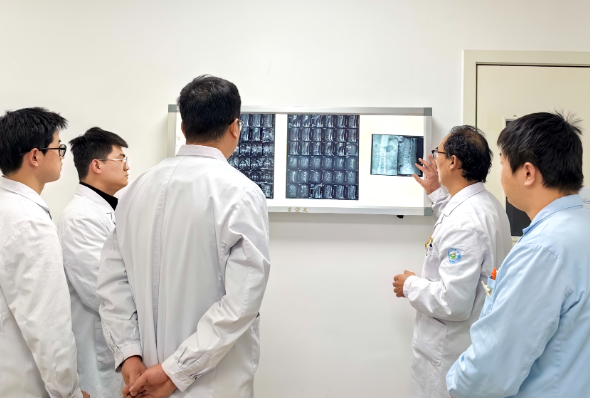 患者入住骨一科后,杜磊主任带领所有医师仔细查体、认真审阅相关辅助检查,多次讨论患者诊疗方案,评估治疗效果,最终决定为患者行“胸12椎体压缩骨折切开复位骨水泥椎弓根钉棒内固定+椎板减压+神经根松解+脊柱畸形矫形术”。