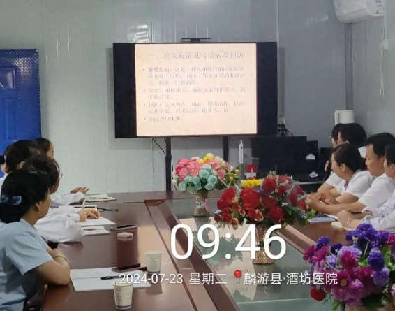 康宣教安排部署,提高基层医务人员应对洪涝灾害后的传染病防治和急诊急救业务能力,切实保障群众身体健康和生命安全。7月23日,麟游县医院副院长杨勇带领内科、眼科、功能科、检验科以及护理方面专业技术人员共9人,深入酒房镇卫生院、两亭镇卫生院、招贤镇卫生院、丈八镇卫生院、崔木镇卫生院开展汛期健康宣教暨洪涝灾害后传染病防治知识培训等工作。