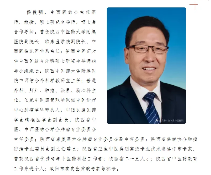 2025年1月8日(周三),国家中医药管理局区域中医诊疗中心肿瘤学科带头人、陕西省中医药学会肿瘤专业委会主任委员、中西医结合主任医师、教授、硕士研究生导师、博士后合作导师。