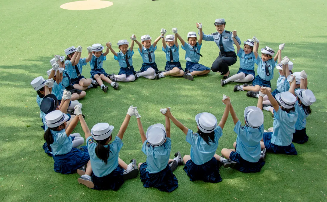 “立正!小手伸直,掌心向前——这是停止信号!”