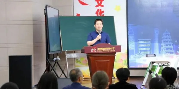 活动伊始,陕西省西安小学教育集团总校长李涛致辞。李校长首先代表学校对陈先主任、各位专家和老师们共聚陕西省西安小学,共话语文教育与语文教学课堂表示欢迎。随后李校长向大家介绍了学校的办学目标、教学理念,陕西省西安小学以“科研立校、学科强校、特色发展”为“减负提质”的有效路径与目标,坚持“实验性、示范性、特色化”的办学目标,以“乐学”为教学理念,在教育中发现问题、解决问题,分享了陕西省西安小学多年来在语文教学中的改革与创新。特别感谢陈先云老师的引领指导,希望在陈老师的引领下与教育同行共话语文教育、语文教学,聚焦新课程标准,推进高质量课堂。