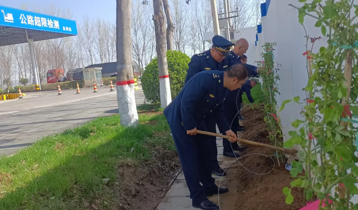 在安全工作稳步推进的同时,永寿超限运输检测站积极响应绿色发展号召,以实际行动投身于绿化环境的活动之中。精心组织工作人员开展植树种花活动,希望借由这一抹抹新绿,为春日添彩,为过往司乘人员送去盎然生机。短短几天的时间下来,月季、蔷薇、南天竹等各类花卉与绿植使检测站已然焕然一新。这些绿植不仅美化了检测站的环境,更提升了检测站的整体形象,展现出积极向上的精神风貌。