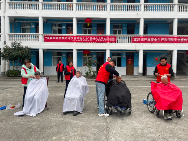 生日会后,来自茅坪集镇各个理发店的志愿者们迅速行动,摆好理发工具为敬老院的老人们理发,伴随着剪刀的咔嚓声,碎发纷纷落下,老人们原本稍显凌乱的头发变得整齐利落,精神面貌焕然一新。娴熟的修剪手法、暖心的服务赢得了老人的称赞。