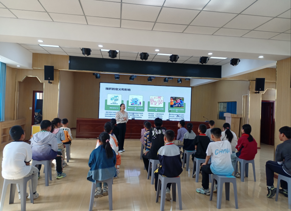 其次,特邀心理老师为留守困境儿童现场开展了心理健康知识普及专题讲座。心理老师凭借生动有趣的案例、深入浅出的讲解,从认识生命价值开场铺垫,循序渐进,引导孩子们感受生命的珍贵,树立珍爱生命的观念;通过情景模拟、互动游戏等方式,教会孩子们识别和表达不同情绪,调整自己的心态,培养积极健康的生活态度,并掌握深呼吸、转移注意力等简单实用的情绪调节方法,有效提升了他们的情绪管理能力。同时,老师还结合孩子们在学习和生活中可能遇到的困难,引导大家正确看待失败,培养积极乐观、勇于面对挫折的心态,增强心理韧性。整个过程中,孩子们全神贯注,积极参与互动,现场气氛热烈。