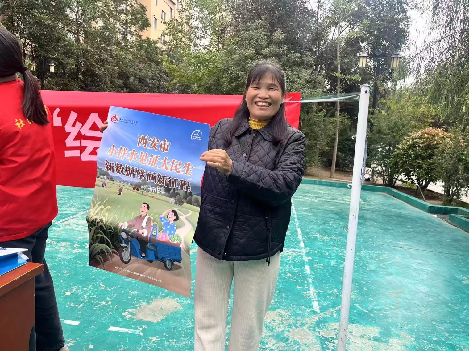 活动现场,居民手持宣传画,脸上洋溢着幸福的笑容要一并加入本次的宣传活动。宣传画上“小场景见证大民生新数据擘画新征程”的标语,直观展现了人口数据对城市发展的重要性。此次抽样调查旨在为政策制定提供准确依据,助力社区服务优化。