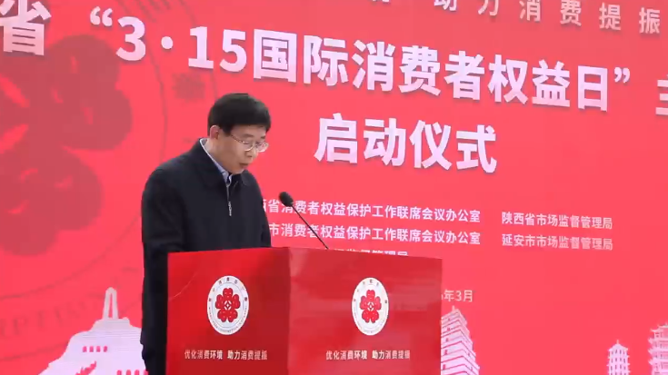 3月11日,2025年陕西省“3·15”主题活动在延安启动,活动围绕 “优化消费环境、助力消费提振” 主题展开。省消费者权益保护工作联席会议召集人,省市场监管局党组书记、局长张小平,市委常委、常务副市长高建华出席并致辞。省、市消费者权益保护工作联席会议各成员单位代表、延安市和宝塔区市场监管局代表约120人参加活动。