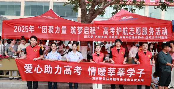 六月是耕耘后的收获时节,更是青春梦想扬帆起航的时刻。随着一年一度的高考如约而至,为给广大考生及家长提供贴心服务,横山区税务局联合区团委于高考期间,在横山中学考点开展“团聚力量 筑梦启程”爱心助考活动,用实际行动为学子逐梦之路保驾护航。