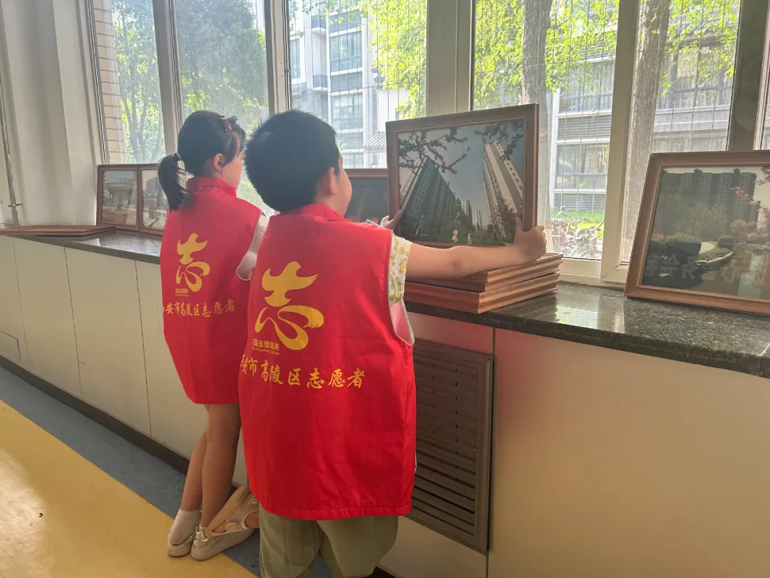 在高陵区崇皇街道泾康园社区,一场关于 “旧物焕新颜” 的美好行动正在上演。一群可爱的小志愿者们,用稚嫩的双手,让沉睡已久的风景摄影作品相框重获新生,为社区走廊披上了一层充满诗意的 “新装”。
