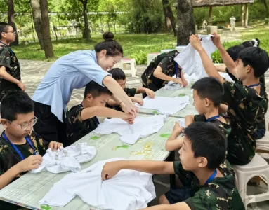 2025年7月24日上午,勉县武侯墓博物馆为强化青少年“强国复兴有我”的使命担当,迎接夏季文旅消费季,特开展了非遗扎染体验活动。勉县野狼特训基地的学员们来到武侯墓,在景区内投入了这场“蓝白艺术”的创造。