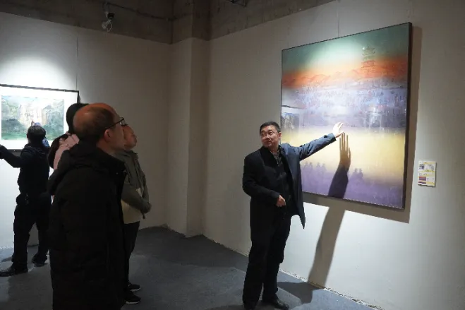 展览现场,一幅幅以黄河为核心主题的作品,用细腻笔触、丰富色彩勾勒出母亲河的壮阔风光、沿岸的人文风情与时代变迁,全方位展现了黄河文化的深厚底蕴与精神内核。干部们有序参观,时而驻足凝视画作中色彩晕染的层次、构图布局的巧思,时而轻声交流观展感悟,探讨水彩艺术中“自然之美”与“人文之韵”的融合之道,在沉浸式体验中接受审美熏陶,提升美学认知。