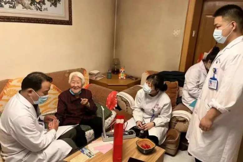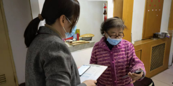 “阿姨,今天怎么样?家里缺啥不?有需要联系社区。”