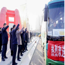 启动仪式结束后,在白起公园南门,眉县人社局通过“点对点、一站式”的方式,为30余名赴江苏务工人员提供“爱心专车”输送服务,欢送仪式上,出席活动的领导为外出务工人员送上“爱心大礼包”并送去祝福和安全嘱咐。
