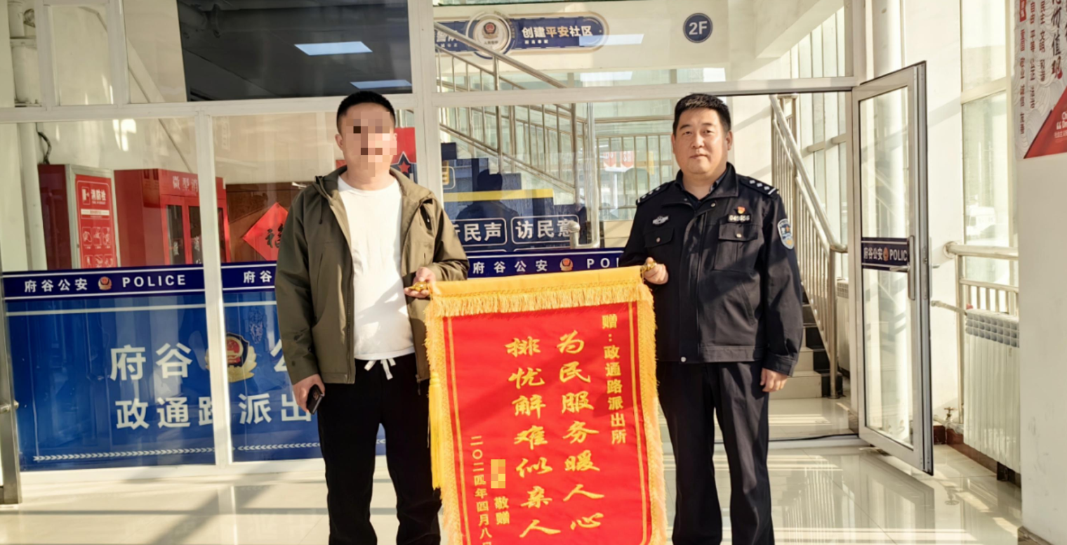 4月8日,杨先生将一面印有“为民服务暖人心 排忧解难似亲人”的锦旗送到府谷县公安局政通路派出所民警手中,对民警倾力调解、一心为民的工作作风深表感谢。