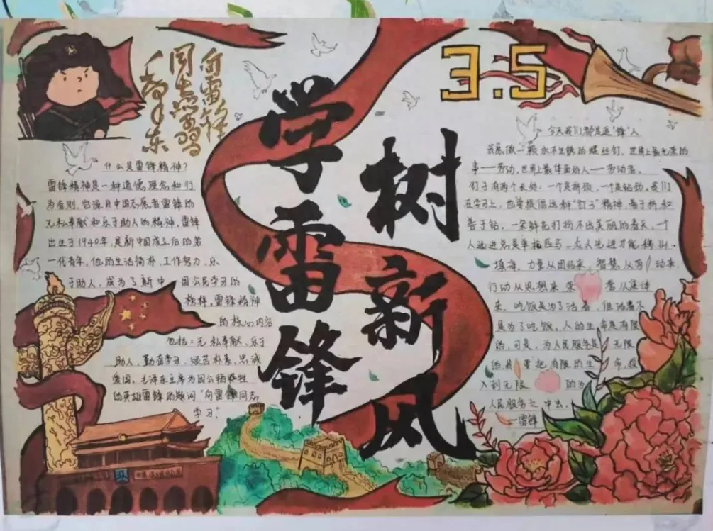 学校通过升旗仪式进行“学雷锋”国旗下演讲;在校园广播发出传承雷锋精神倡议,各班积极开展“雷锋精神伴我行”主题班会、黑板报、绘画展等活动,让雷锋精神滋润学子心田。组织学生志愿者前往校园周边,擦拭公交站牌和社区宣传栏,捡拾地面垃圾,整理乱停放的电动车,以实际行动践行“雷锋精神”。志愿劳动常开展,服务周边人心暖。雷锋的事迹深入人心,雷锋精神永不过时,让我们向“锋”而行、化爱于行,赓续传承雷锋精神,展现志愿服务风采,将小事做实,大事做细,把雷锋精神渗透到学习生活的各个环节中,用我们的爱心和行动,共建一个美丽和谐的校园。