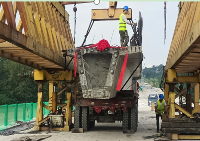 344国道武功段漆水河大桥首片箱梁架设成功