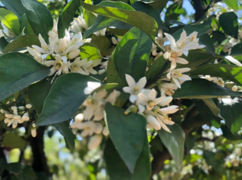 我上次到桔园,是五月。正值橘花盛开的时节,我陪朋友到桔园游玩,一路上我给朋友描述,橘花的洁白如雪,灿如繁星,簇拥枝头的样子,给她唱我写的《橘花谣》,可到了桔园,对着满眼葱翠,和低低藏在枝叶间的娇羞小花,她依然捧住一枝,惊喜无比。那俯身微笑的样子,如见故人,又像闲逛苏州老街时突然遇到了一款蓝色碎花的裙子,满脸,满心,都是欣喜。