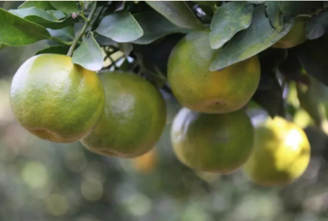 我这次到橘园,是九月,天刚下过小雨。弯曲的水泥路面,湿淋淋的,但清爽无尘,橘树下红色的泥土,淋雨后显得愈发红亮。橘树上,挂着许多绿色汤圆般的果子,上面滚动着晶莹剔透的露珠,十分惹人喜爱。