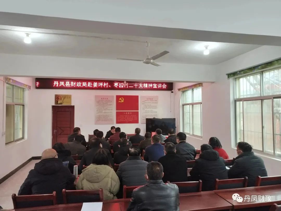 活动中,丹凤县财政局党组书记、局长杨龙同志首先为姜坪村、枣园村“两委会”成员、驻村工作队、局总支部分党员干部进行了党的二十大精神宣讲,会议要求两委会成员、驻村工作队和全体党员干部要认真学习二十大报告精神实质,将财政中心工作同二十大精神相结合,同驻村工作相结合,制定详细学习计划,自觉用党的二十大精神武装头脑、指导实践,确保党的二十大精神在基层落地生根;同时要继续加强基层治理工作,提高群众幸福感和满意度。驻村工作队全体党员干部要持续抓好作风建设,巩固财政系统“换脑子转作风树形象促发展”作风建设成果,深入推进“干净干事、追求卓越”作风建设活动取得实效。