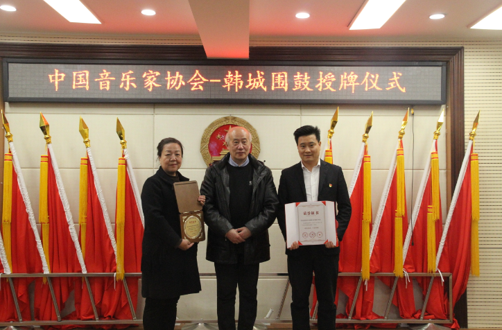 会上,韩城市文联主席王春红在讲话中指出,韩城历史悠久、文化底蕴深厚。而韩城围鼓是根植于韩城文化之中的代表符号之一,更是陕西省“非物质文化遗产”。此次陕西省音乐家协会打击乐专业委员会对王村围鼓艺术团颁授荣誉,对我们促进非物质文化遗产保护,弘扬优秀传统文化具有重要意义。我们将不断加强对中华优秀传统文化的挖掘和阐发,用文艺的力量温暖人、鼓舞人、启迪人,更好地展现韩城文化的地方特色、风格,做好历史文化保护传承的“大文章”。