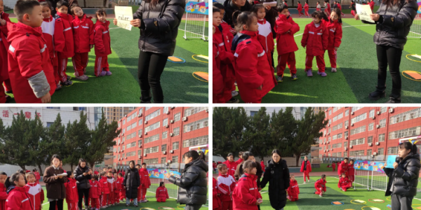 一年级的活动主题为砸沙包读单词。老师将单词卡片巧妙放置在游戏区域,同学们分组接力,手持沙包奋力砸向卡片,随后迅速读出卡片上的单词。孩子们眼神专注,小手紧握沙包,每一次投掷都满怀期待;读单词时更是鼓足劲儿,奶声奶气却又字正腔圆。