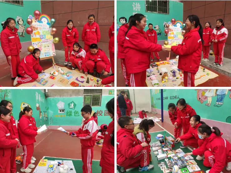 六年级活动为“跳蚤市场”。各班组织学生进行角色分配,有进行海报设计宣传推广的,有进行摊位设立的,有摊位迎宾接待员,有摊位秩序维护人员等等。通过扮演不同的角色,学生在实践中学习如何与人沟通、如何管理自己的“小生意”。