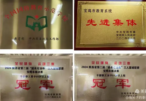 2024年,扶风初中秉持 “办更有尊严、更有内涵的教育”的初心,坚持扩大民主面,坚守主旋律,弘扬正能量,平衡着制度的硬度和管理的温度,褒奖着每一个扶初人的岗位自律和行为自觉。以“愿意比别人多做一点、多想一点、早做一点、做好一点”为基础内涵的“用心教育”理念初露峥嵘。学校教育教学再创新佳绩,人文管理再创新局面。一年来,学校先后荣获全国国防教育示范学校、陕西省第二届三人篮球联赛女子组冠军;宝鸡市教育系统先进集体、宝鸡市“四好”事业单位党组织、宝鸡市2024年运动会篮球比赛男子乙组第五名、乒乓球男子团体赛第六名、女子团体赛第五名、校园足球联赛体育道德风尚奖;扶风县2023年爱国主义影评优秀组织单位、微电影优秀组织单位、教育宣传工作先进集体、职工新春联欢会优秀组织奖、巾帼文明岗、目标责任考核优秀单位、青少年足球联赛县级比赛第一名、篮球运动会男子组第一名、女子组第一名、教育系统2023–2024学年度先进基层党组织、中考教学质量优胜奖、八年级教学监测质量优胜单位等25项省市县级殊荣。