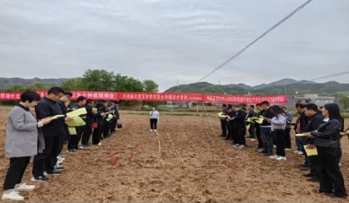 为落实国家粮食安全战略和推进大豆扩种工作,实现“玉米不减产、多收一茬豆”的目标,促进农业增效农民增收,4月28日,丹凤县在龙驹街办贺家村举办大豆玉米带状复合种植示范播种现场会。丹凤县人民政府主管农业副县长龚富杰、农业农村局局长张建成出席会议,各镇(办)分管农业副镇长(主任)、农综站站长,贺家村村干部及农业种植户代表参加。丹凤县农技中心主任黄涛主持会议。